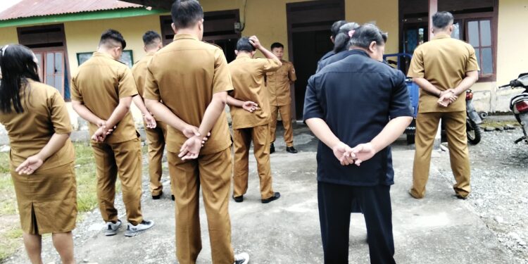 Dalam penyampaiannya, Abniel Saky menekankan agar seluruh perangkat desa selalu disiplin sesuai perintah Perbup 100 tahun 2023 tentang jam kerja.