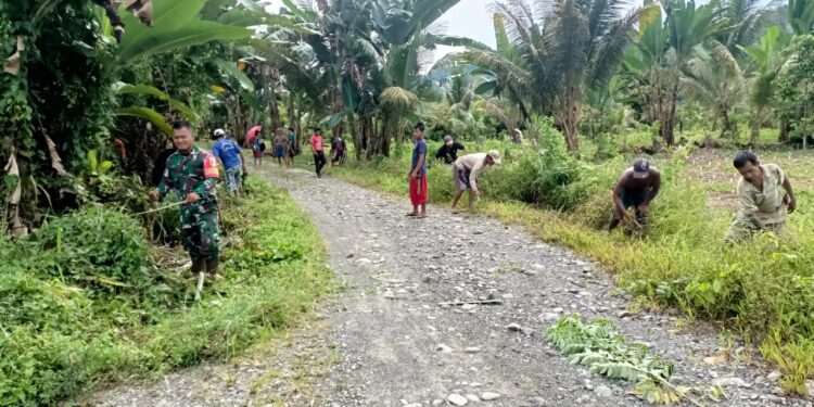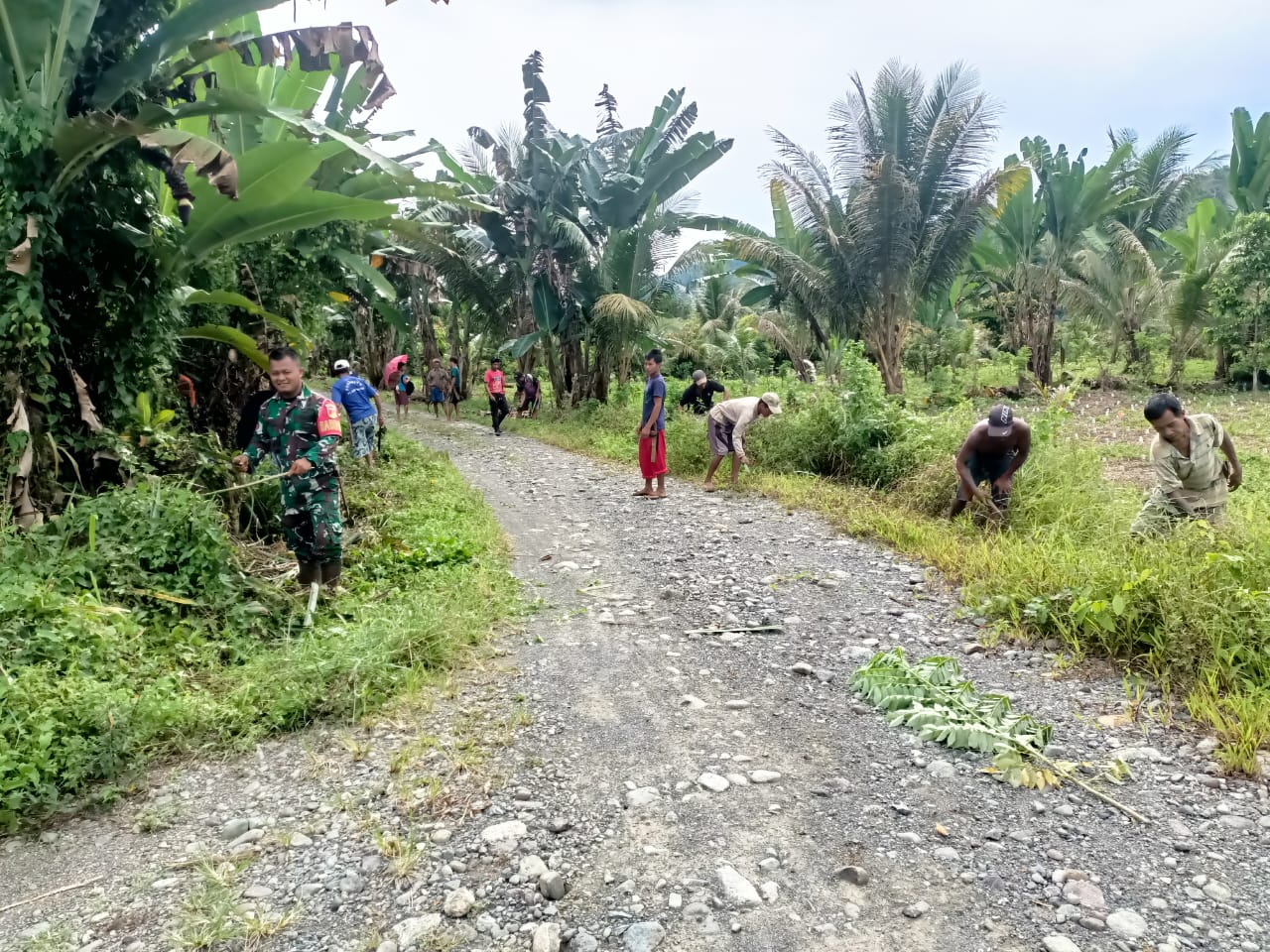 Pemdes dan Masyarakat Doda Bunta Laksanakan Kerja Bakti, Libatkan Anggota TNI