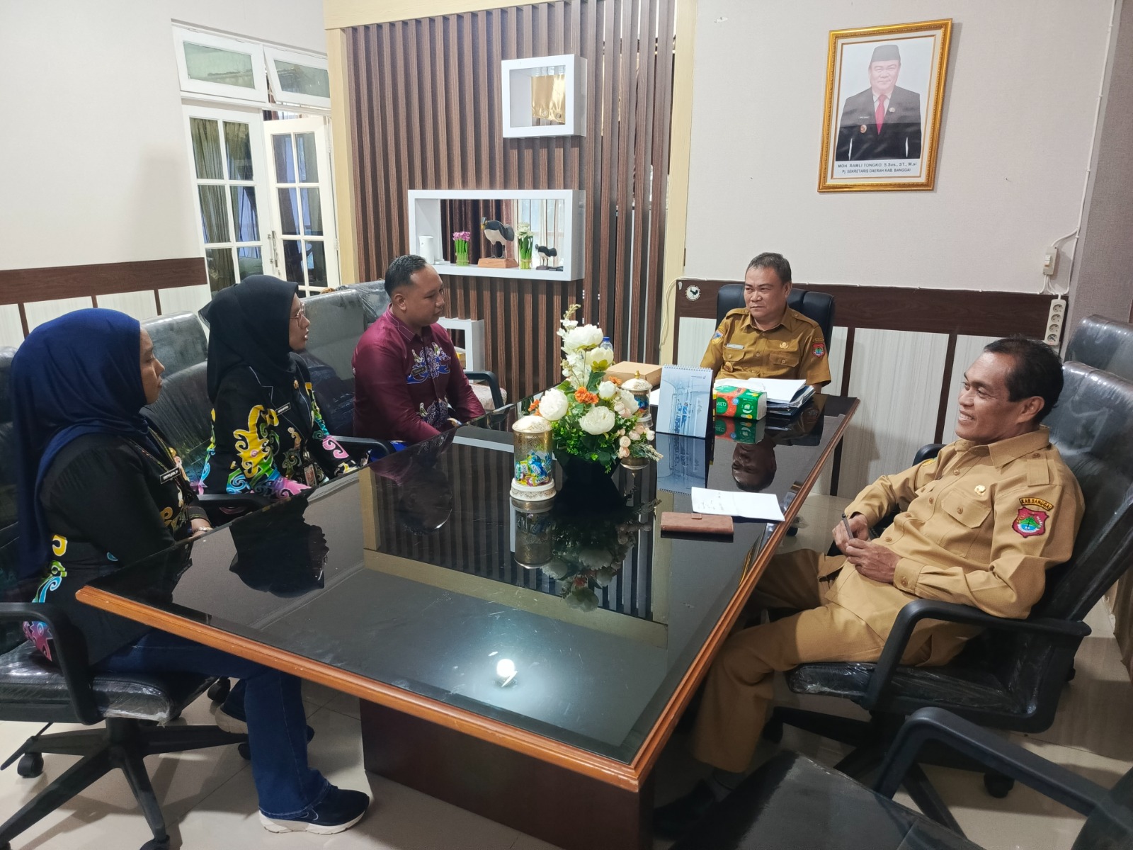 Dalam pertemuan tersebut, Pj Sekda Kabupaten Banggai didampingi Kabag Protokol dan Komunikasi Pimpinan Setda Kabupaten Banggai, Muhlis Pampawa.