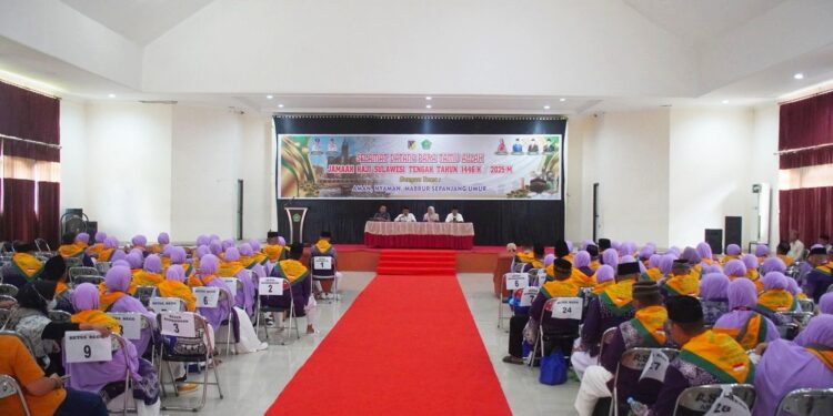 KILASBANGGAI.COM, PALU – Mewakili Pemerintah Kabupaten Banggai, Asisten Pemerintahan dan Kesra Sekretariat Daerah Kabupaten Banggai Hj. Nurdjalal, S.H. menyerahkan secara resmi Jamaah Calon Haji Tahun 2025 Kloter 8 asal Kabupaten Banggai.