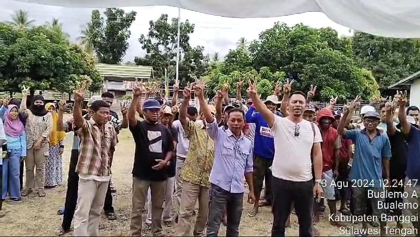 “Kami warga Bualemo berterima kasih kepada bapak bupati dan wakil bupati atas bantuan Rp 5 miliar melalui pelimpahan kewenangan. Kami siap mendukung bapak 2 periode,” ucap seorang pria sembari mengangkat tangan (dua jari) dan diikuti waga lain dalam video itu.
