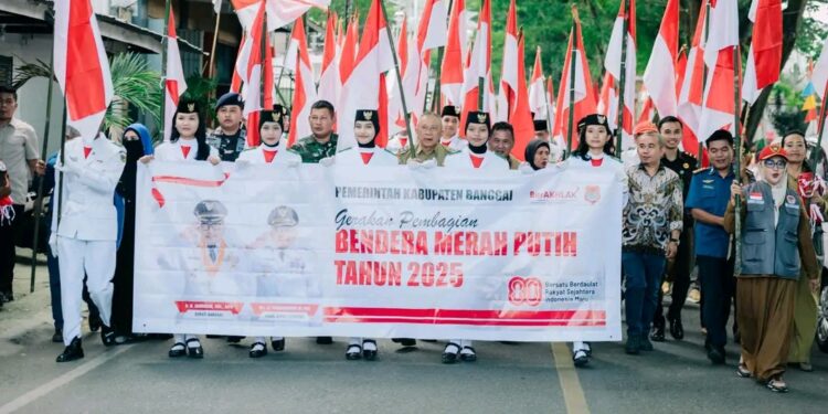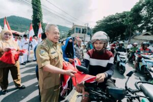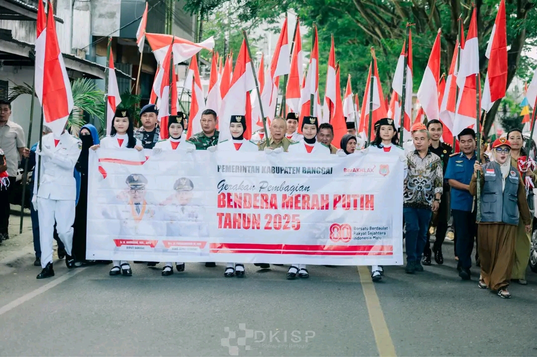 Pada kesempatan itu, Kesbangpol Banggai membagikan bendera merah putih kepada masyarakat. Diawali dengan pemancangan belasan bendera di Tugu Nol Km, depan Polsek Luwuk, Wabup Furqanuddin bersama seluruh peserta dialog kebangsaan kemudian membagikan bendera merah putih kepada pengendara yang lewat.