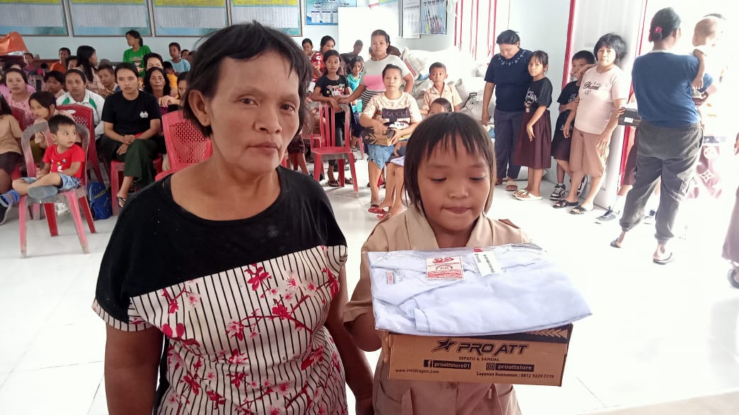 70 orang siswa-siswi sekolah dasar di berikan perlengkapan seragam sekolah. Kata “Indriyani madalombang” kades gonohop