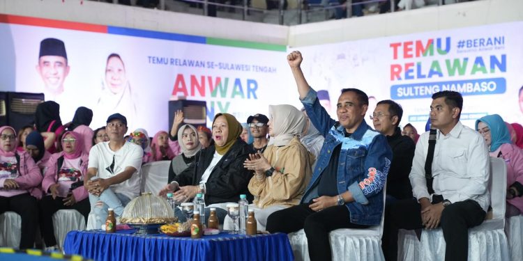 KILASBANGGAI.COM,PALU– Gubernur Sulawesi Tengah Anwar Hafid bersama Wakil Gubernur dr. Reny Lamadjido dan Ketua TP-PKK Sulteng Sry Nirwanti Bahasoan menghadiri Temu Relawan Berani di JCC Palu, Senin (6/10/2025). Ribuan relawan dari berbagai kabupaten dan kota se-Sulawesi Tengah memadati gedung pertemuan, membawa suasana hangat dan penuh nostalgia seperti masa-masa perjuangan kampanye pasangan Berani dulu.