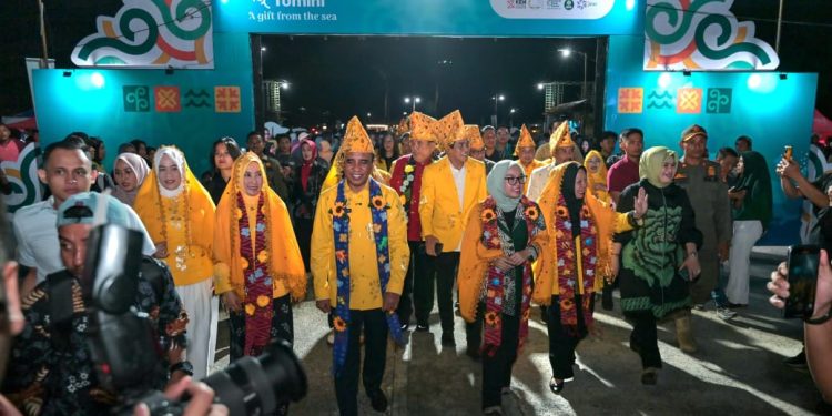 KILASBANGGAI.COM,PARIGI MOUTONG– Gubernur Sulawesi Tengah Dr. H. Anwar Hafid, M.Si dan Wakil Gubernur dr. Reny A. Lamadjido, Sp.PK., M.Kes., serta Ketua Tim Penggerak PKK Sulteng Hj. Sry Nirwanti Bahasoan, secara resmi membuka Festival Teluk Tomini (FTT) 2025 yang berlangsung di Anjungan Tepi Laut Kayubura, Kabupaten Parigi Moutong. Tahun ini, FTT mengusung tema “A Gift From the Sea” atau “Sebuah Hadiah dari Laut”, yang menjadi penanda kuatnya penghormatan masyarakat terhadap kekayaan dan potensi laut. Acara pembukaan digelar pada Kamis malam (20/11/2025).