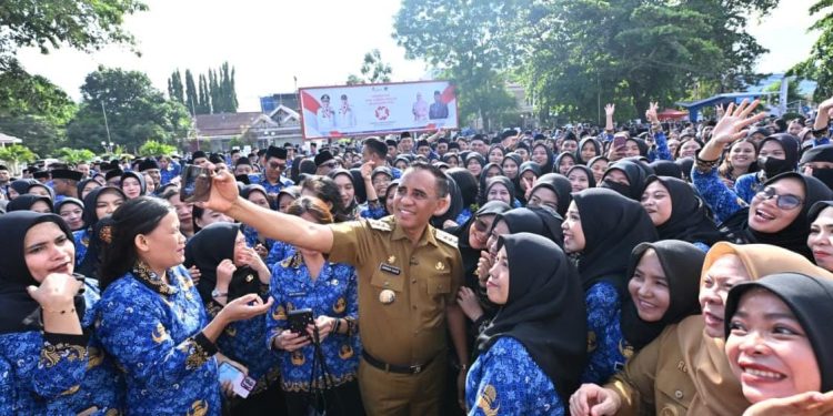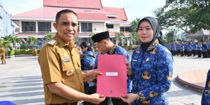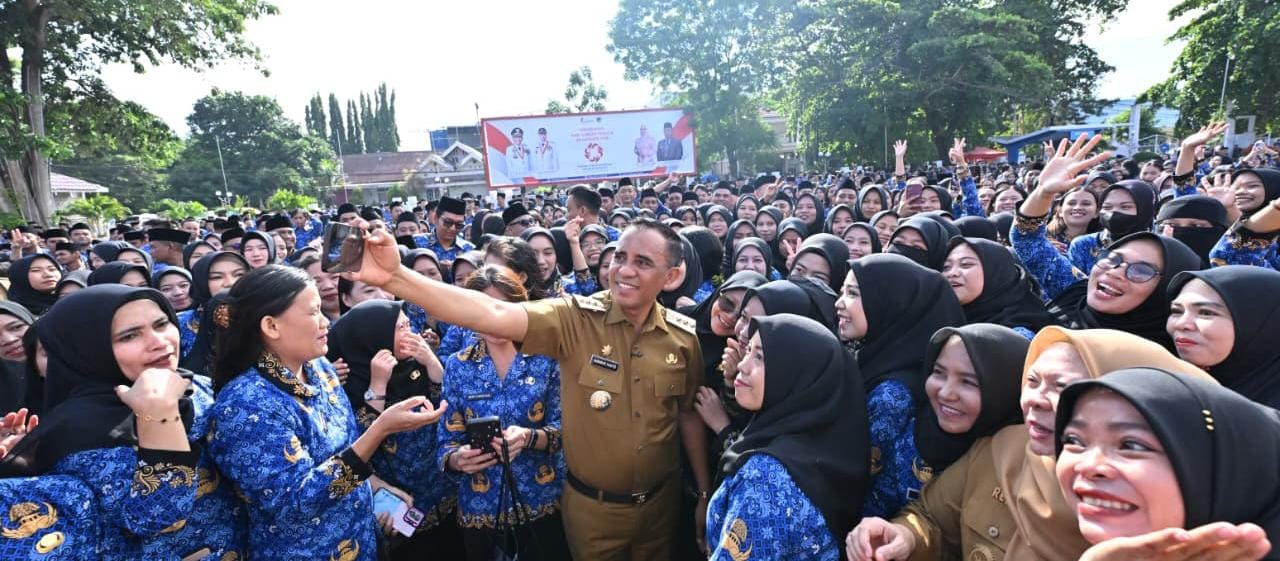 KILASBANGGAI.COM,PALU-Gubernur Sulawesi Tengah Dr. H. Anwar Hafid, M.Si resmi menyerahkan Surat Keputusan (SK) Pengangkatan Tahap II bagi Pegawai Pemerintah dengan Perjanjian Kerja (PPPK/P3K) Tahun 2024 kepada 1.103 tenaga honorer lingkup Pemerintah Provinsi Sulteng, di halaman Pogombo, Senin (3/11/2025).