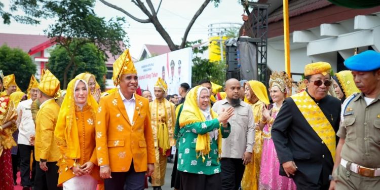KILASBANGGAI.COM,PALU – Suasana khidmat sekaligus penuh kehangatan menyambut kedatangan Gubernur Sulawesi Tengah, Anwar Hafid, bersama Wakil Gubernur dr. Reny Lamadjido dan Ketua TP-PKK Sulteng, Sry Nirwanti Bahasoan, saat tiba di lokasi Upacara Peringatan Hari Ulang Tahun (HUT) ke-47 Kota Palu. Prosesi adat digelar di Halaman Kantor Wali Kota Palu, Sabtu (27/9/2025).