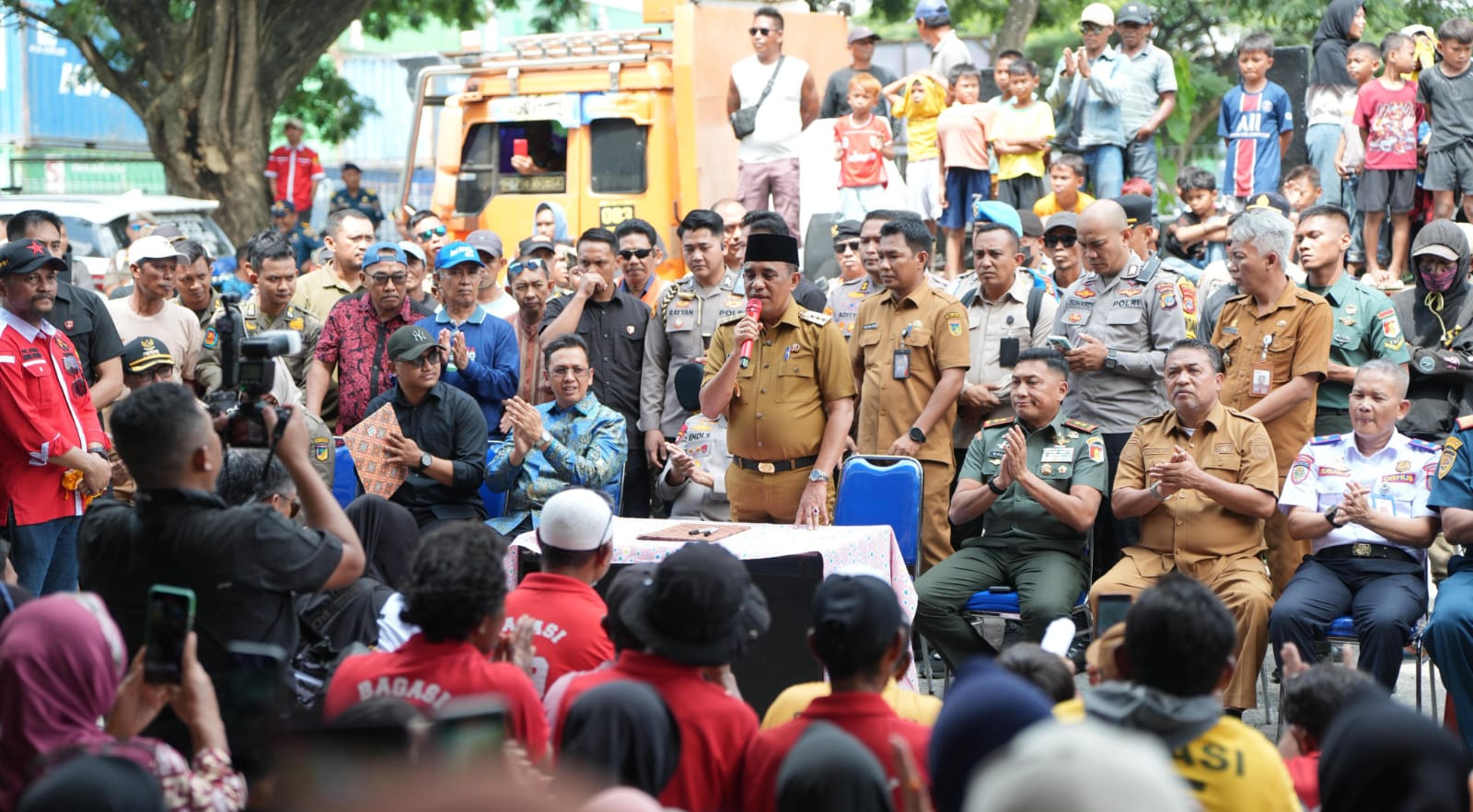KILASBANGGAI.COM,PALU – Gubernur Sulawesi Tengah Anwar Hafid bersama Kapolda Sulawesi Tengah Irjen Pol Endi Sutendi dan Pangdam XXIII/Palaka Wira Mayjen TNI Jonathan Binsar Parluhutan turun langsung menemui ratusan masyarakat di Pelabuhan Pantoloan, Selasa (23/12/2025).