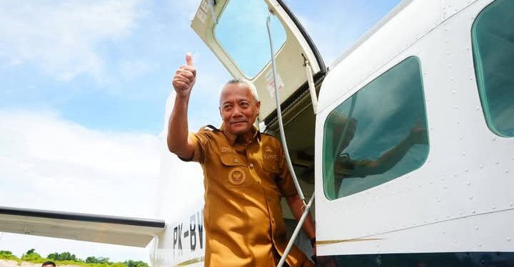 Dalam sambutannya, Bupati Sofyan sangat berterima kasih kepada Presiden RI dan Kementerian Perhubungan RI yang telah menyediakan moda transportasi udara dengan harga yang terjangkau.