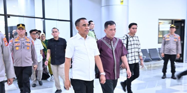 KILASBANGGAI.COM,PALU-Gubernur Sulawesi Tengah Dr. H. Anwar Hafid, M.Si, menyambut kedatangan Kepala Kepolisian Daerah (Kapolda) Sulawesi Tengah yang baru, Irjen Pol Dr. Endi Sutendi, S.I.K, SH, MH bersama Ketua Bhayangkari Daerah Sulawesi Tengah Ny.Ida Endi Sutendi di Bandara Mutiara Sis Al-Jufri, Palu, Jumat (31/10/2025).