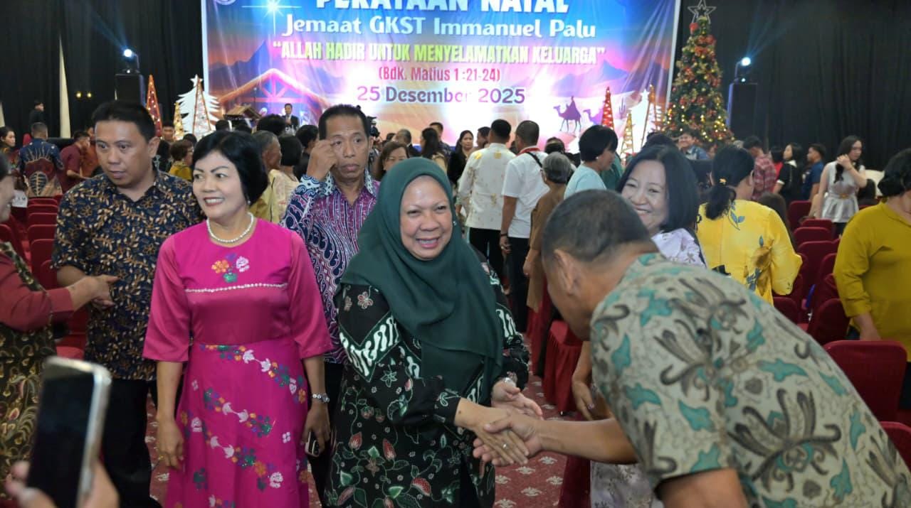 Dalam sambutannya, Wagub dr.Reny menyampaikan ucapan selamat Natal kepada seluruh jemaat GKST Immanuel Palu. Ia juga mengajak jemaat memaknai Natal sebagai momentum memperkuat iman sekaligus mempererat kehidupan berkeluarga.