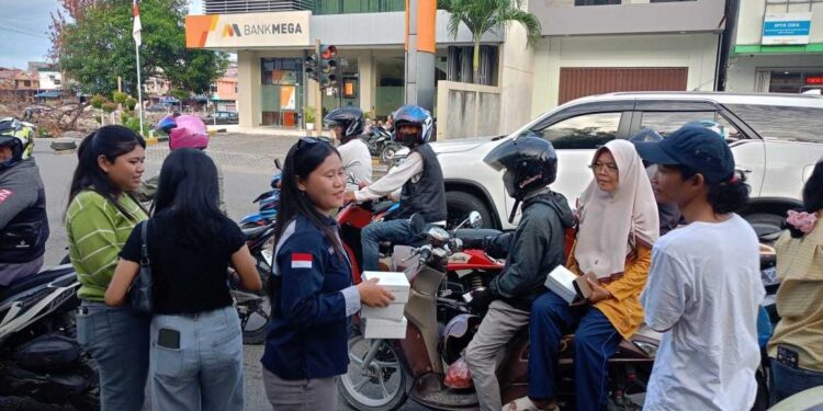 Dengan semangat kebersamaan, anggota GMKI dan Pemuda Sinode GKLB membagikan 150 paket takjil kepada pengendara roda dua dan roda empat yang melintas di lokasi kegiatan.