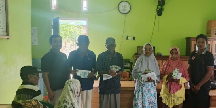 Penyaluran BLT berlangsung di Kantor Desa Lambako pada Jumat (21/3/2025).