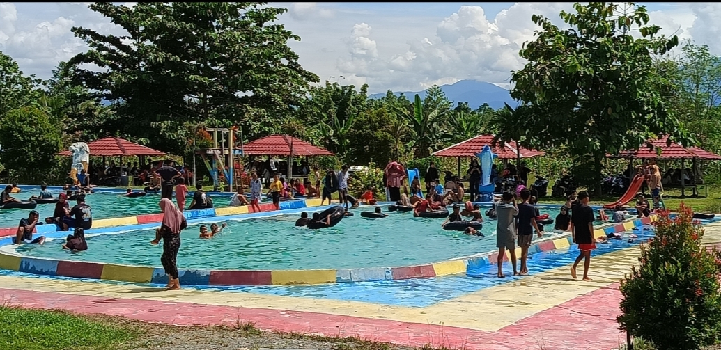 Ratusan pengunjung menghabiskan waktu libur di wisata telaga biru di desa damai makmur kecamatan nuhon.